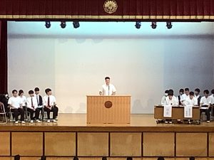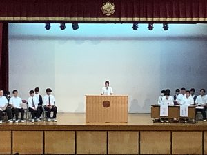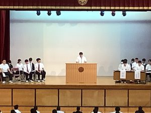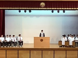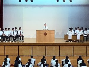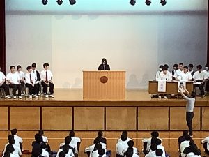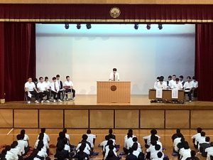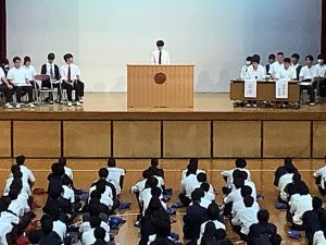 9月24日(水)5限目、記念体育館にて新生徒会役員を決めるための「生徒会改選・立会演説会」が行われました。